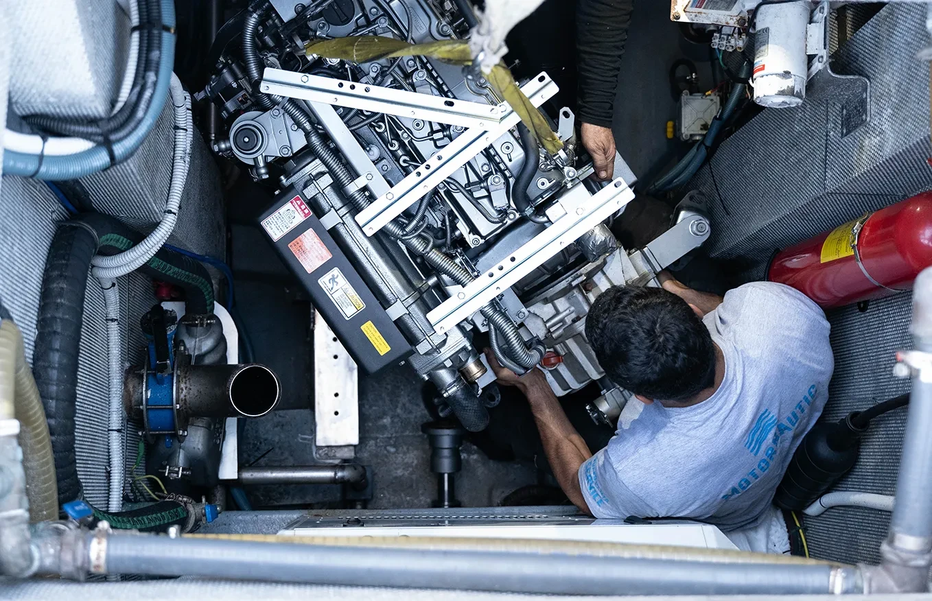 Vista en imágenes del día a día en nuestro taller náutico para mantenimiento y reparaciones de embarcaciones en la Costa de Barcelona.